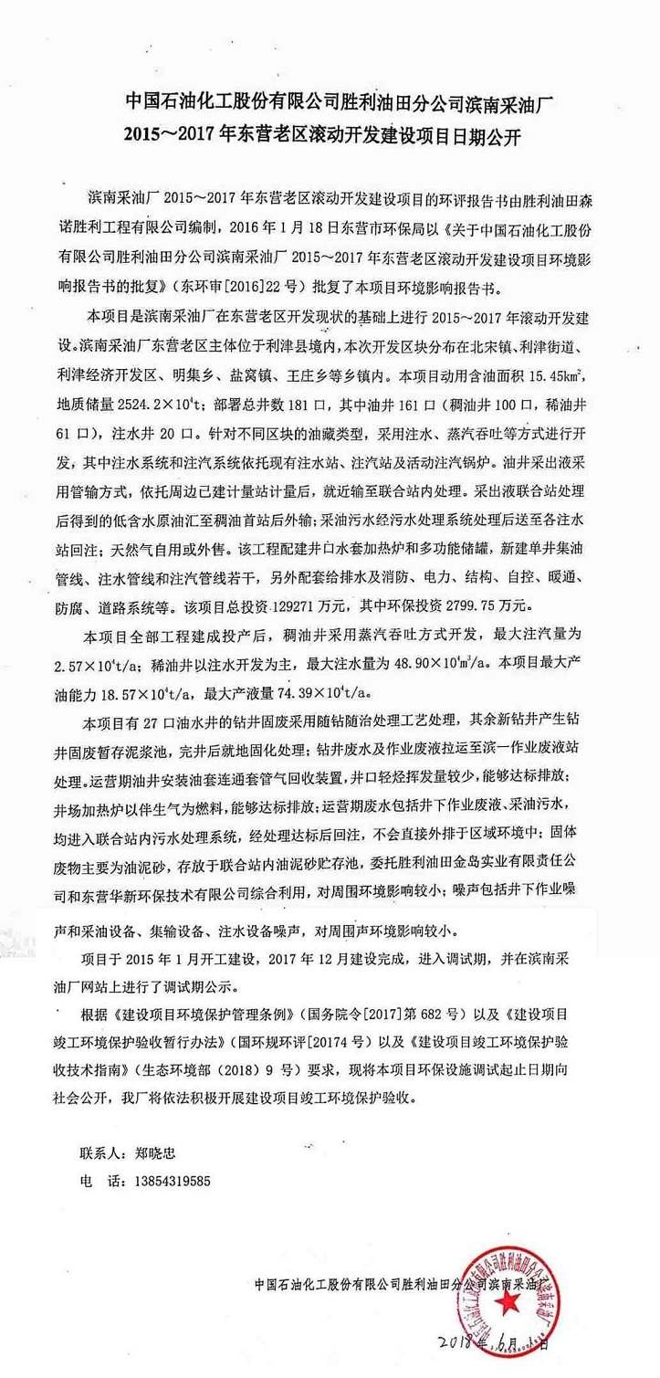 中國(guó)石油化工股份有限公司勝利油田分公司濱南采油廠2015~2017年?yáng)|營(yíng)老區(qū)滾動(dòng)開發(fā)建設(shè)項(xiàng)目日期公開