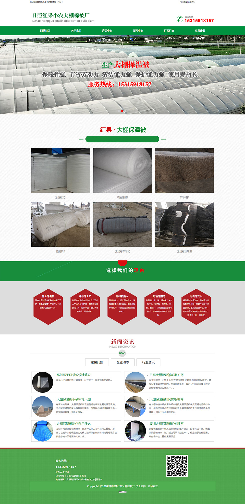 山東省日照市紅果小農(nóng)大棚棉被廠,開(kāi)發(fā)于三農(nóng)一線,以市場(chǎng)需要為創(chuàng)業(yè)理念,借鑒于蔬菜之鄉(xiāng)壽光等地之三農(nóng)高科和省市級(jí)勞模以及各工業(yè)區(qū)精英,學(xué)習(xí)人之長(zhǎng),改善己之短,抱著長(zhǎng)遠(yuǎn)心態(tài)與全體工作人員一體合力,不斷升華產(chǎn)品質(zhì)量。讓客戶滿意才能實(shí)現(xiàn)我們的創(chuàng)造價(jià)值,才能在同行業(yè)具備競(jìng)爭(zhēng)力,并加以完善售后服務(wù),讓客戶無(wú)后顧之憂。